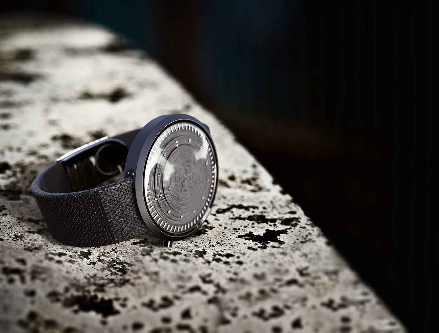 The watch dial creates a feeling of depth hiding the arrows,which turn around under the frist level,giving breath to some light reflections typical of the 45 rpm.
